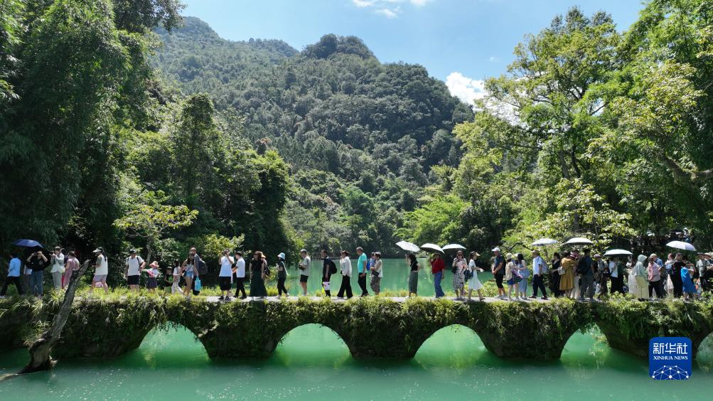 日前,前往貴州省荔波小七孔風(fēng)景區游玩的游客激增,景區各部門(mén)通力合作,服務(wù)游客,每天迎客超過(guò)6.2萬(wàn)人次。