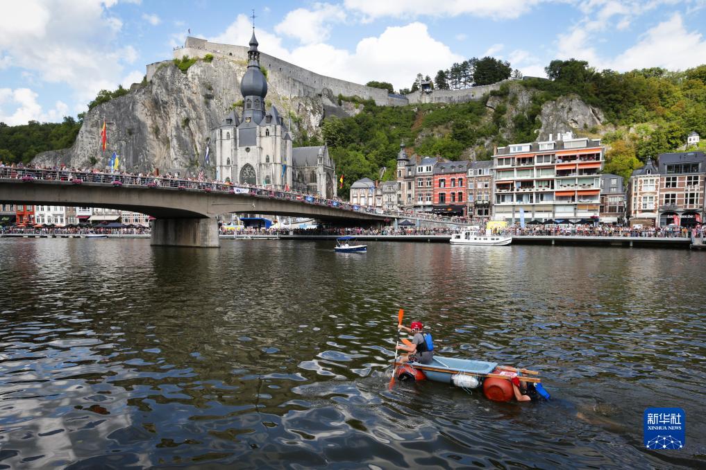 8月15日,在比利時(shí)南部小城迪南的默茲河上,人們參加“浴缸劃船節”。