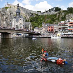 當日,“浴缸劃船節”在比利時(shí)迪南舉行。該活動(dòng)始于1982年,已成為比利時(shí)熱鬧的夏季節慶活動(dòng)之一。今年的“浴缸劃船節”主題為“默茲河上的農場(chǎng)”,參加者圍繞浴缸打造稀奇古怪的船只,比拼設計創(chuàng )意及現場(chǎng)表演。