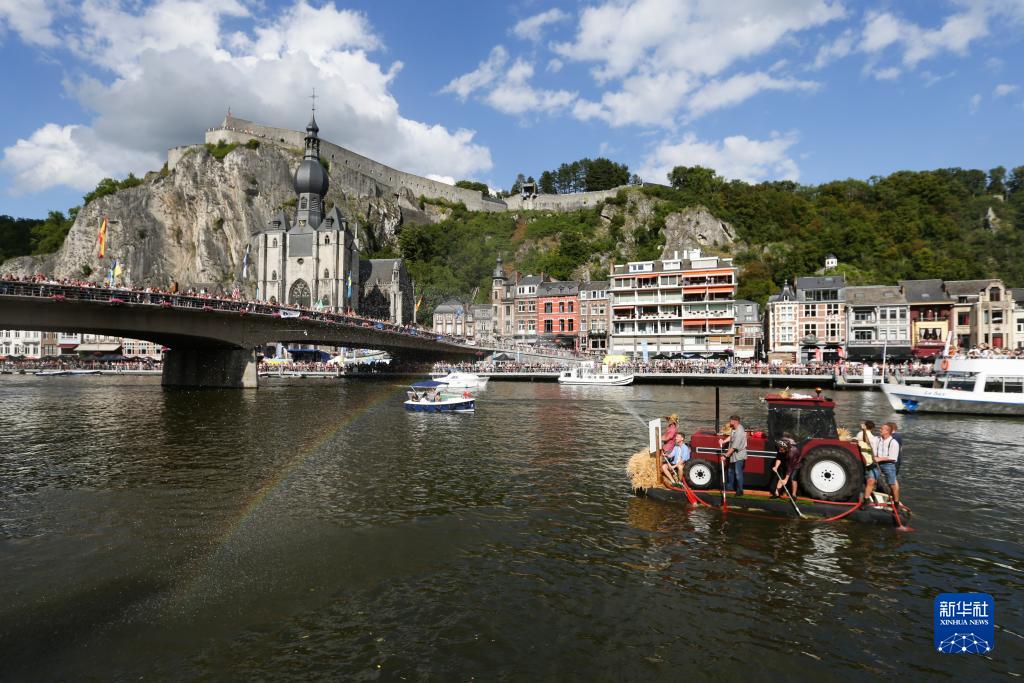 8月15日,在比利時(shí)南部小城迪南的默茲河上,人們參加“浴缸劃船節”。