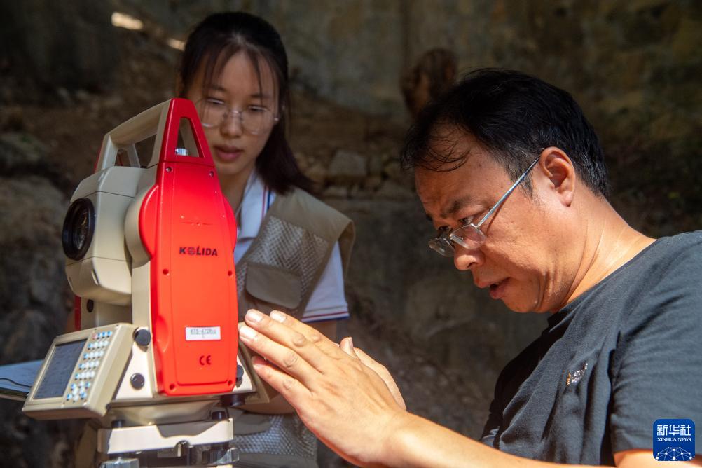 8月16日,工作人員在位于重慶市巫山縣廟宇鎮的龍骨坡遺址上開(kāi)展勘測工作。