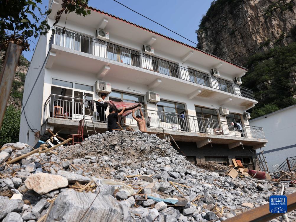 8月15日,河北淶水縣三坡鎮都衙村四背峪村民小組的村民在清理家中雜物。