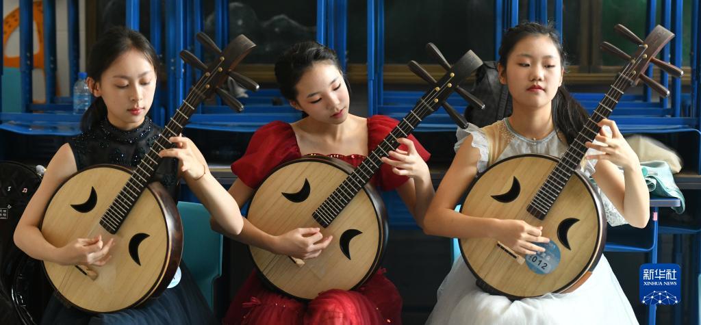8月16日,參賽選手在彈奏阮。
