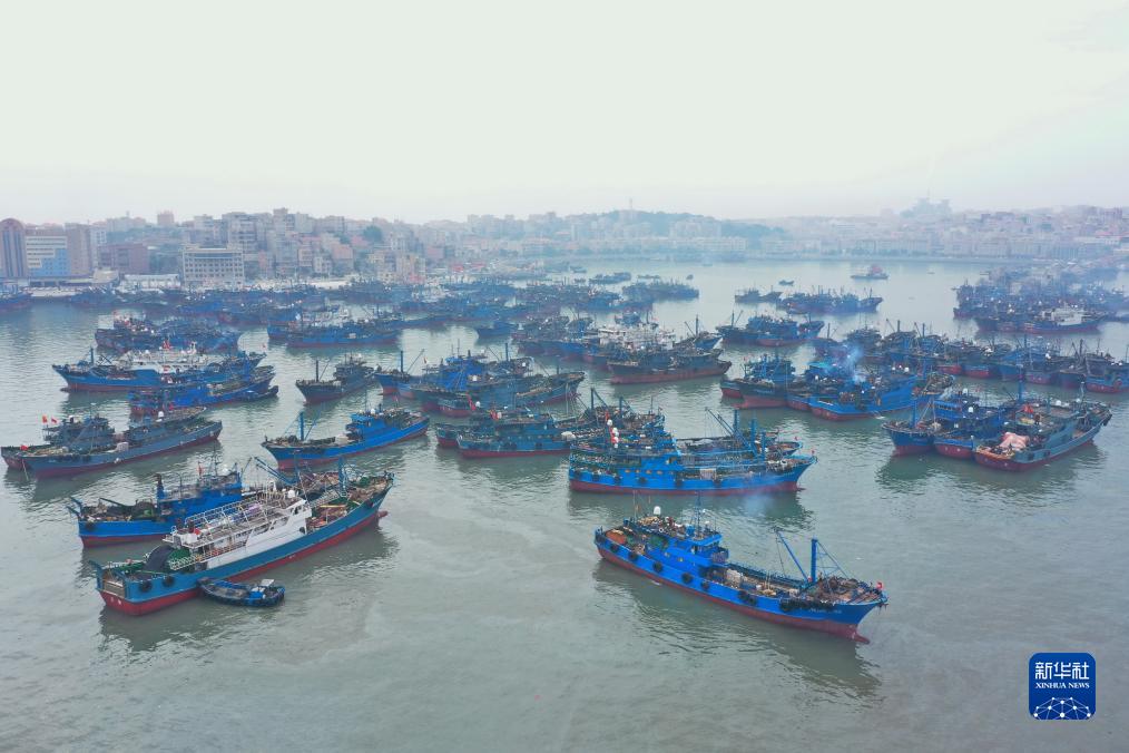 8月16日,漁船在福建泉州市石獅祥芝國家中心漁港準備出海(無(wú)人機照片)。