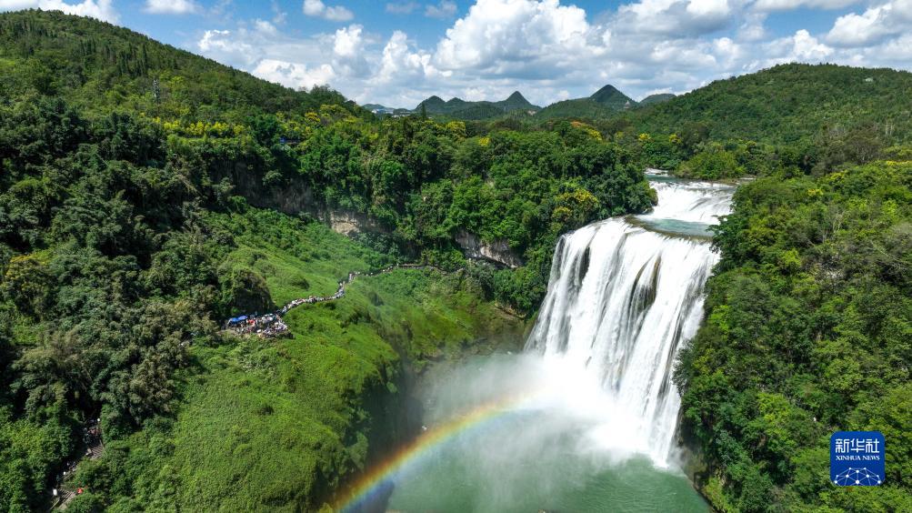 初秋時(shí)節,位于貴州省安順市的黃果樹(shù)瀑布景區進(jìn)入一年中的最佳觀(guān)賞期。大瀑布奔騰而下、氣勢磅礴,前來(lái)觀(guān)賞游玩的游客絡(luò )繹不絕。