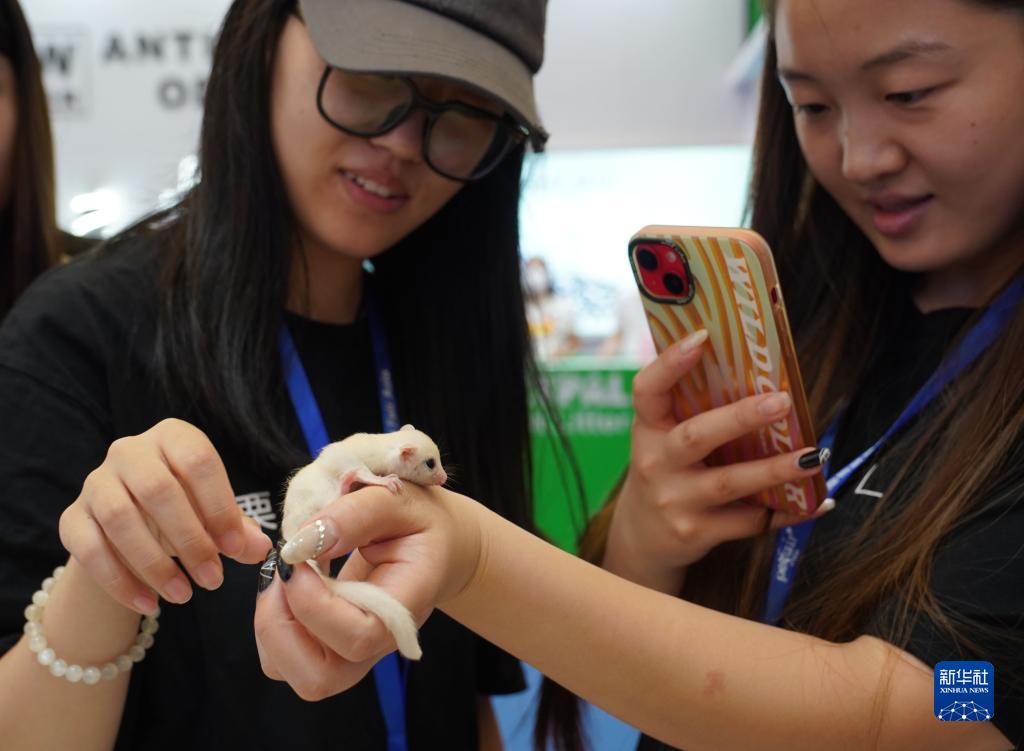 8月16日,觀(guān)眾在第25屆亞洲寵物展覽會(huì )上與蜜袋鼯互動(dòng)。