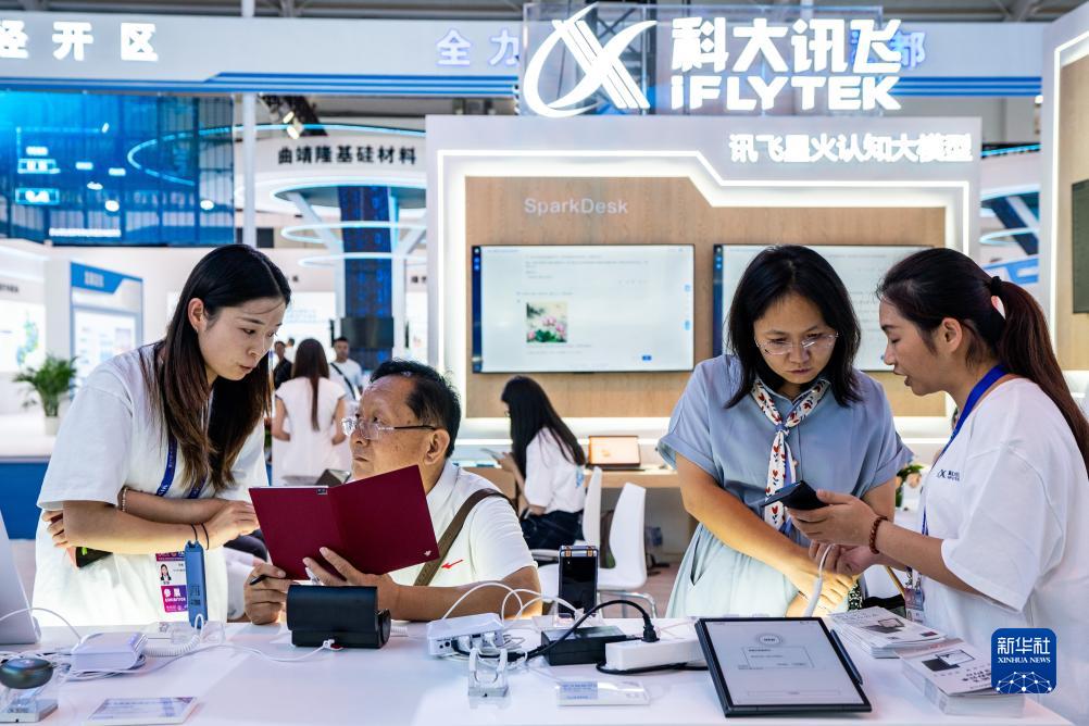 8月16日,觀(guān)眾在第七屆中國—南亞博覽會(huì )上的科大訊飛展位了解數碼產(chǎn)品?! ⌒氯A社記者 胡超 攝
