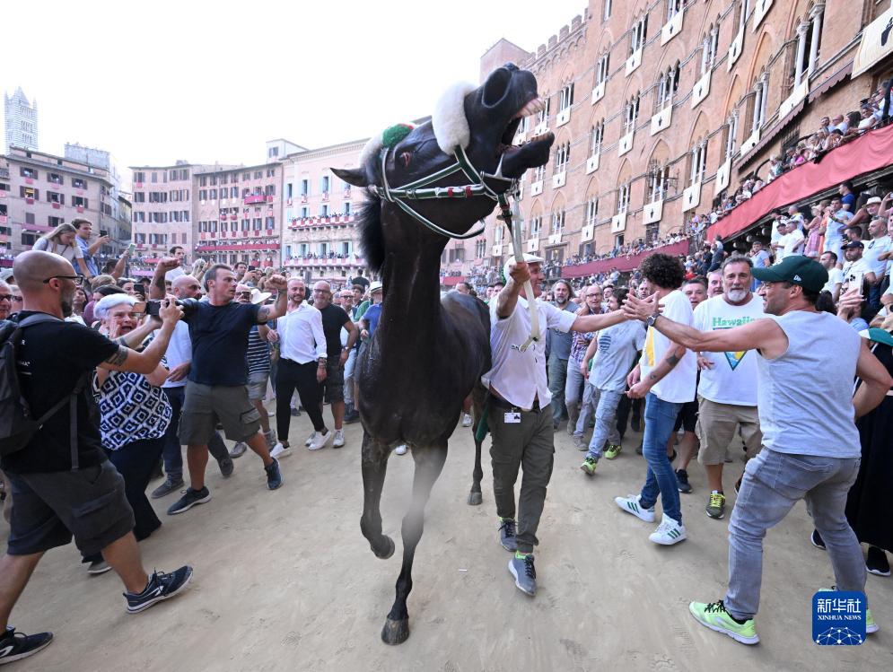 當日,錫耶納賽馬節在意大利托斯卡納大區古城錫耶納市中心的田野廣場(chǎng)舉行,吸引了眾多觀(guān)眾前來(lái)觀(guān)看。錫耶納賽馬節是世界聞名的意大利傳統民間活動(dòng),始于1656年,每年7月2日和8月16日舉行兩次。