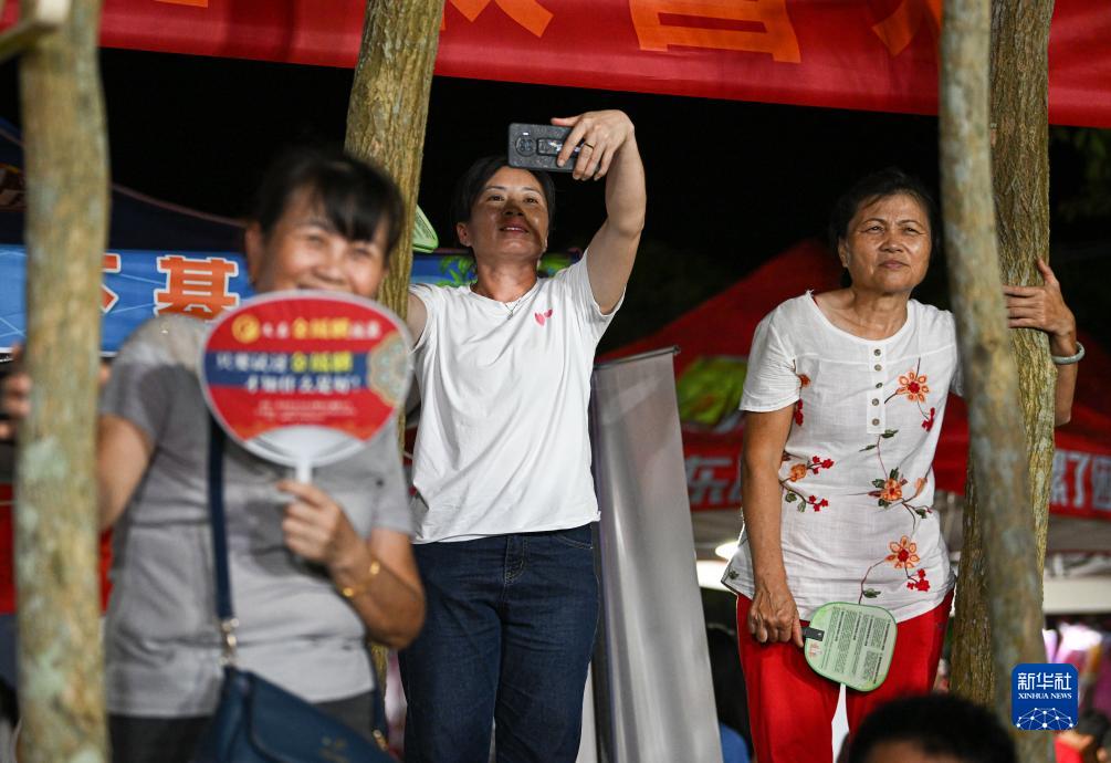 人們在海南省文昌市馮坡鎮觀(guān)看“村排”比賽(7月15日攝)。