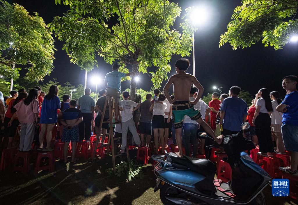 人們在海南省文昌市龍樓鎮觀(guān)看“村排”比賽(7月1日攝)。
