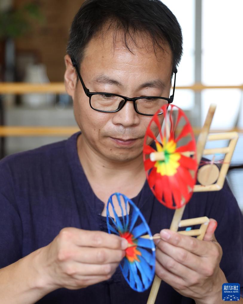傳統吉祥輪彩紙風(fēng)車(chē)代表了喜慶和吉祥,作為遼寧營(yíng)口崔氏傳統吉祥輪彩紙風(fēng)車(chē)制作技藝第四代傳承人,今年43歲的崔凱將原來(lái)傳統風(fēng)車(chē)制作流程和制作工藝進(jìn)行創(chuàng )新和改良。