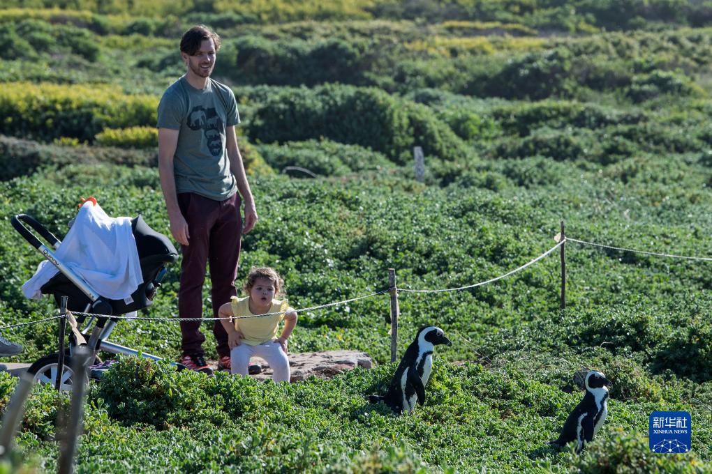 2019年3月30日,在南非貝蒂灣斯托尼波因特非洲企鵝保護區,游客近距離觀(guān)看非洲企鵝。