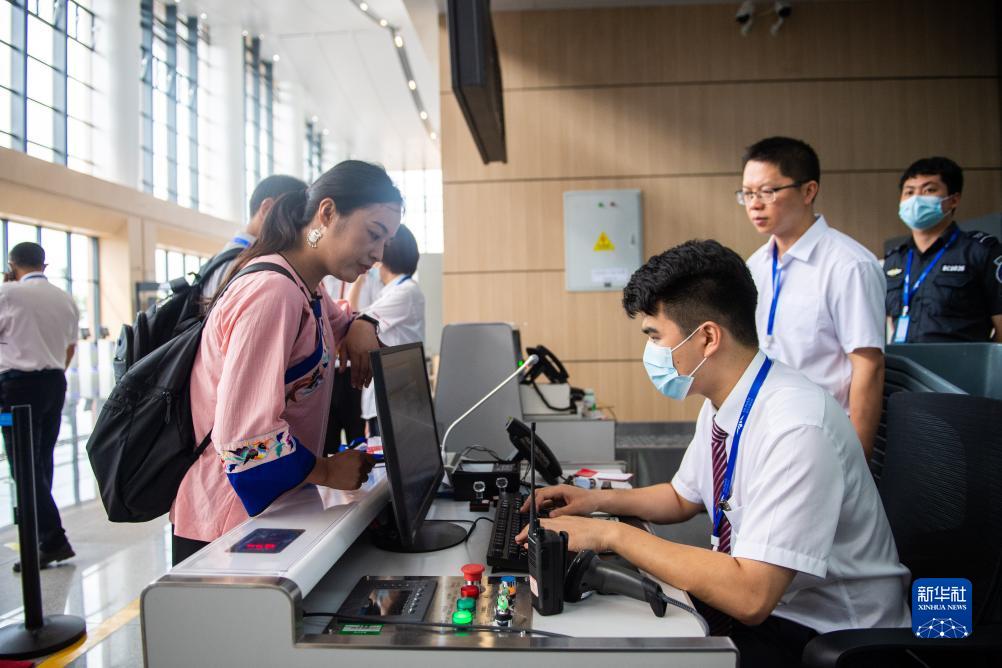 8月18日,旅客在湖南湘西邊城機場(chǎng)辦理值機手續。