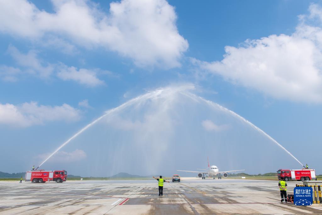 8月18日,湖南湘西邊城機場(chǎng)為首個(gè)進(jìn)港航班舉行“過(guò)水門(mén)”儀式。