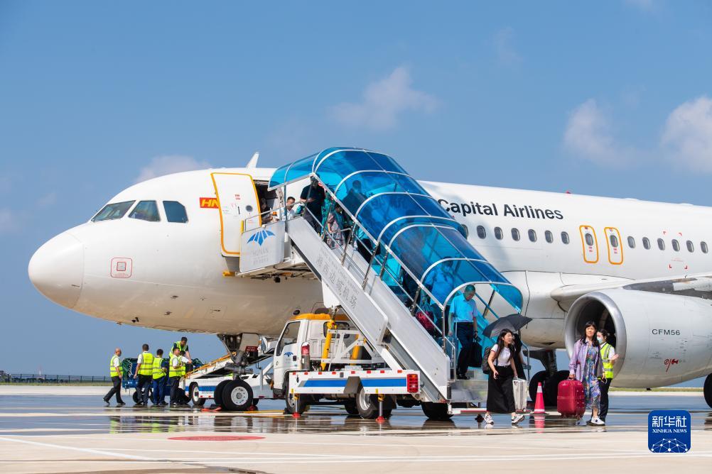 8月18日,旅客走下飛機抵達湖南湘西邊城機場(chǎng)。