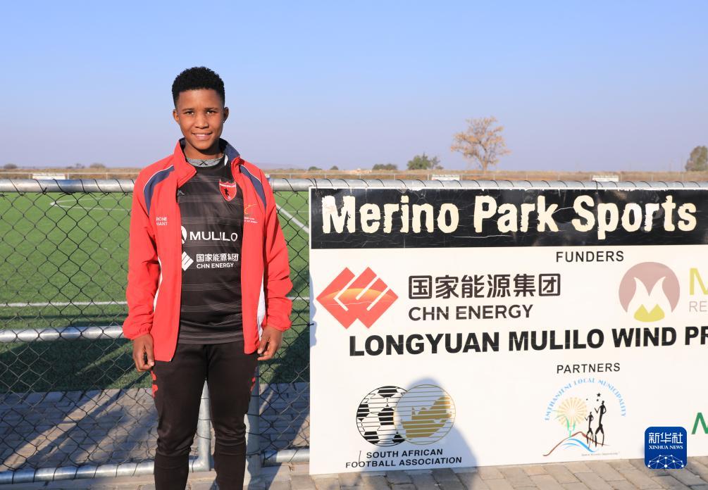 8月10日,在南非北開(kāi)普省德阿鎮,當地女中學(xué)生莎倫·奧利芬特在由龍源南非公司翻修一新的足球場(chǎng)邊接受采訪(fǎng)。