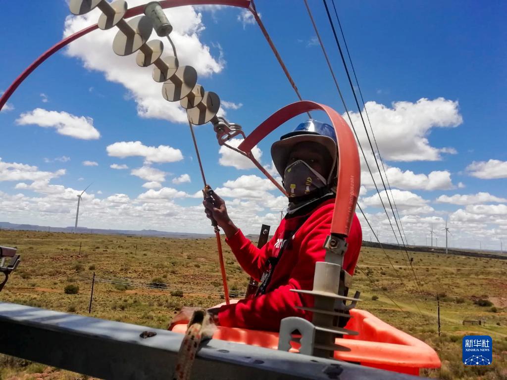 2021年12月24日,在南非北開(kāi)普省德阿鎮,達斯溫·巴松實(shí)習期間在德阿風(fēng)電項目學(xué)習電纜維護。