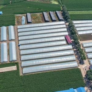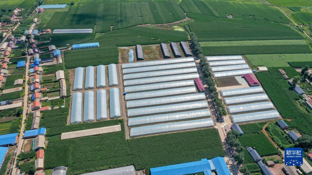 這是在吉林省德惠市朱城子鎮沿河村拍攝的程雪家庭農場(chǎng)玫瑰大棚(8月17日攝,無(wú)人機照片)。