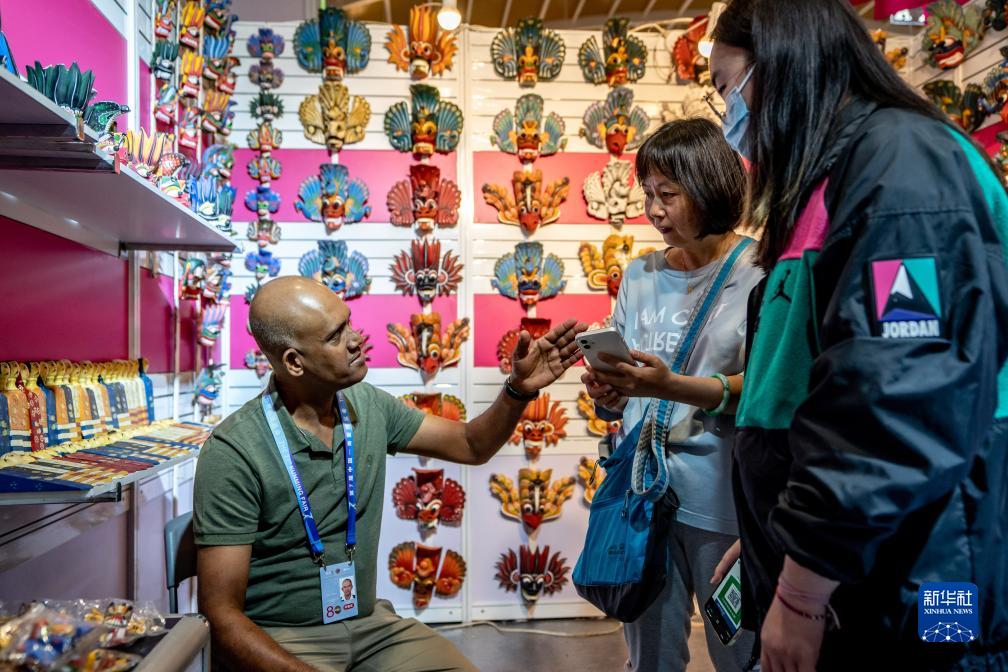 8月18日,參觀(guān)者在斯里蘭卡展區選購商品。