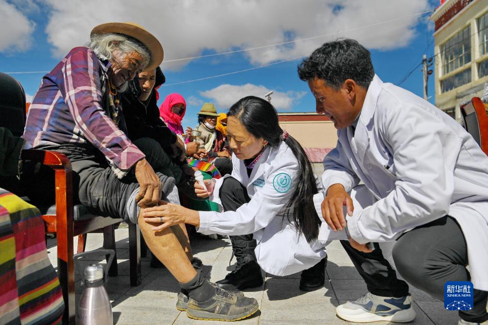 當日,西藏阜康腫瘤醫院的康復理療師來(lái)到海拔4000余米的阿里地區措勤縣曲洛鄉,聯(lián)合當地衛生院的醫生為當地牧民義診。