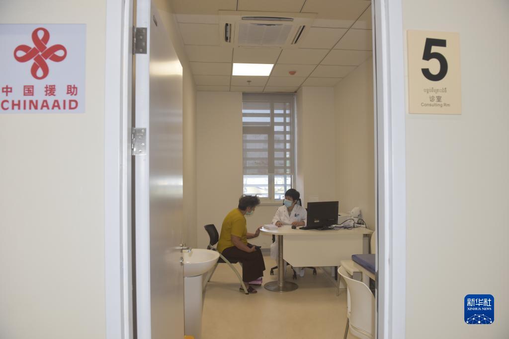 8月18日,在柬埔寨首都金邊的考斯瑪中柬友誼醫院,援柬中醫醫療隊醫生為患者診療。