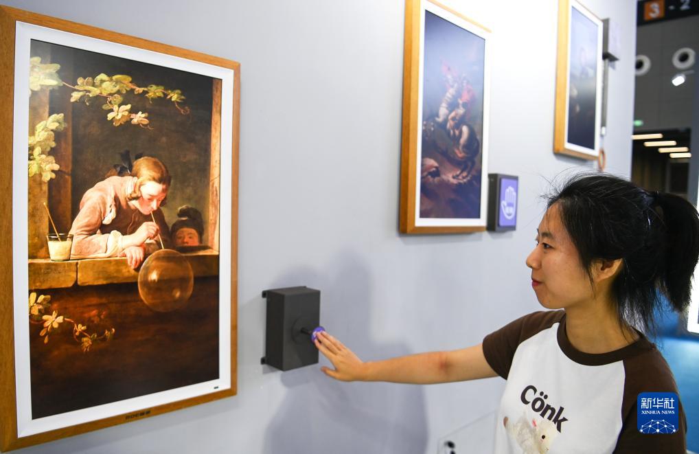 8月18日,參觀(guān)者在數字文化館體驗與名畫(huà)互動(dòng)。
