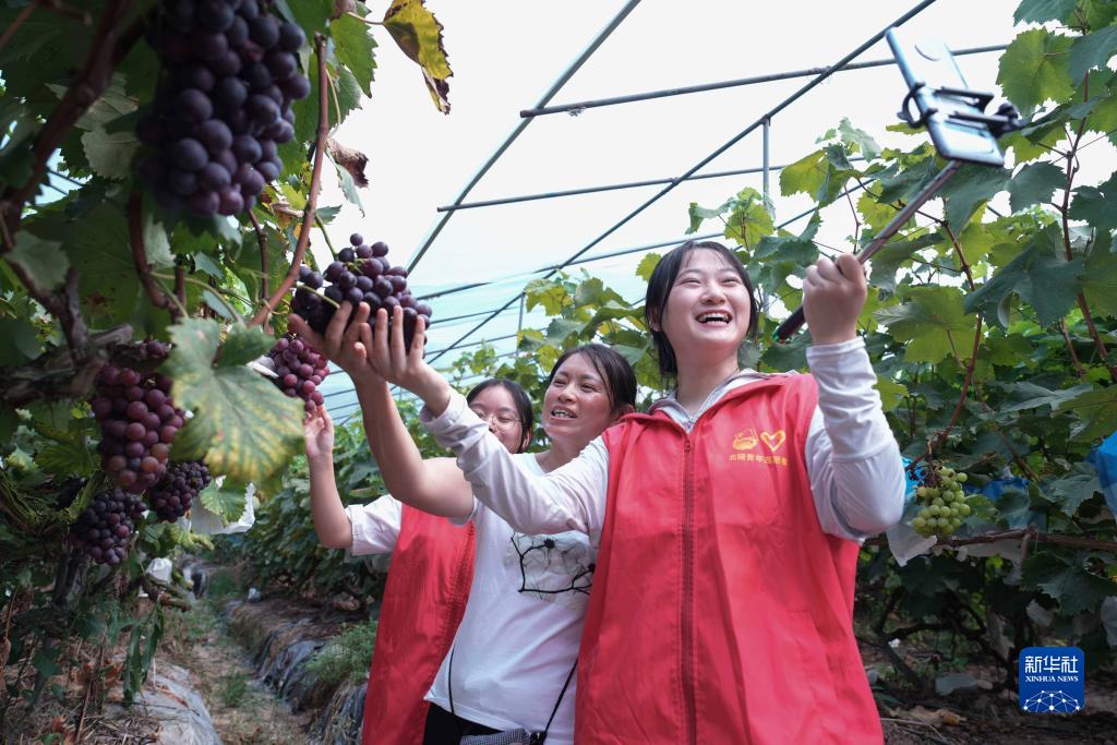 當日,共青團重慶市北碚區委組織參加“返家鄉”“三下鄉”社會(huì )實(shí)踐活動(dòng)的大學(xué)生走進(jìn)葡萄園,開(kāi)展“青耘重慶”直播助農活動(dòng),幫助果農拓寬銷(xiāo)售渠道。今年暑期,共青團重慶市委聯(lián)合多家單位啟動(dòng)了“青耘重慶”直播助農活動(dòng)暨大學(xué)生公益助農營(yíng)銷(xiāo)挑戰賽,組織多個(gè)高校的大學(xué)生開(kāi)展為期兩個(gè)多月的公益助農銷(xiāo)售活動(dòng)。連日來(lái),大學(xué)生們來(lái)到田間地頭,通過(guò)直播帶貨、創(chuàng )意視頻、推文宣傳等形式,擴大當地農特產(chǎn)品影響力和知名度。