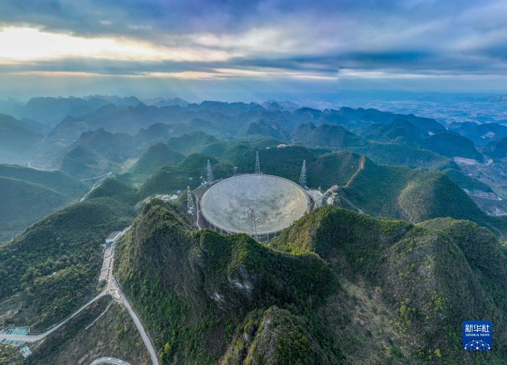 這是2月13日拍攝的“中國天眼”全景(無(wú)人機照片,維護保養期間拍攝)。