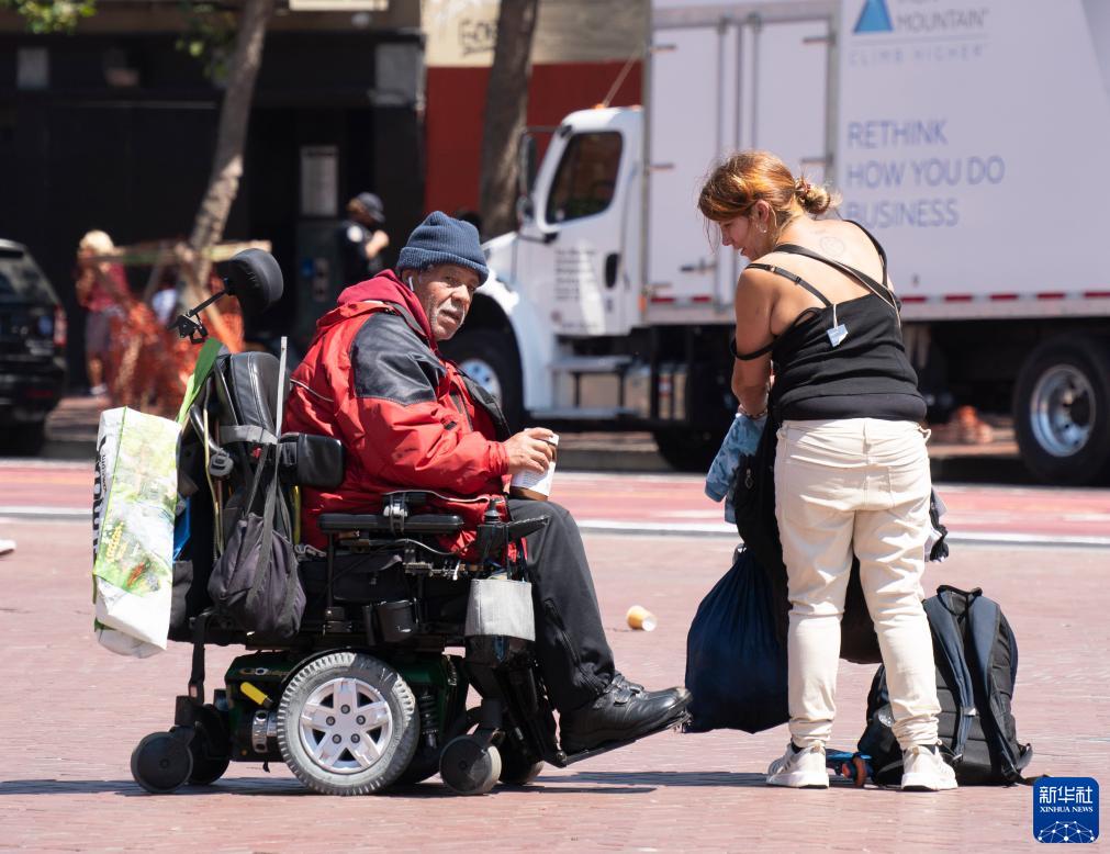 這是8月18日在美國加州舊金山市區的街道上拍攝的無(wú)家可歸者。
