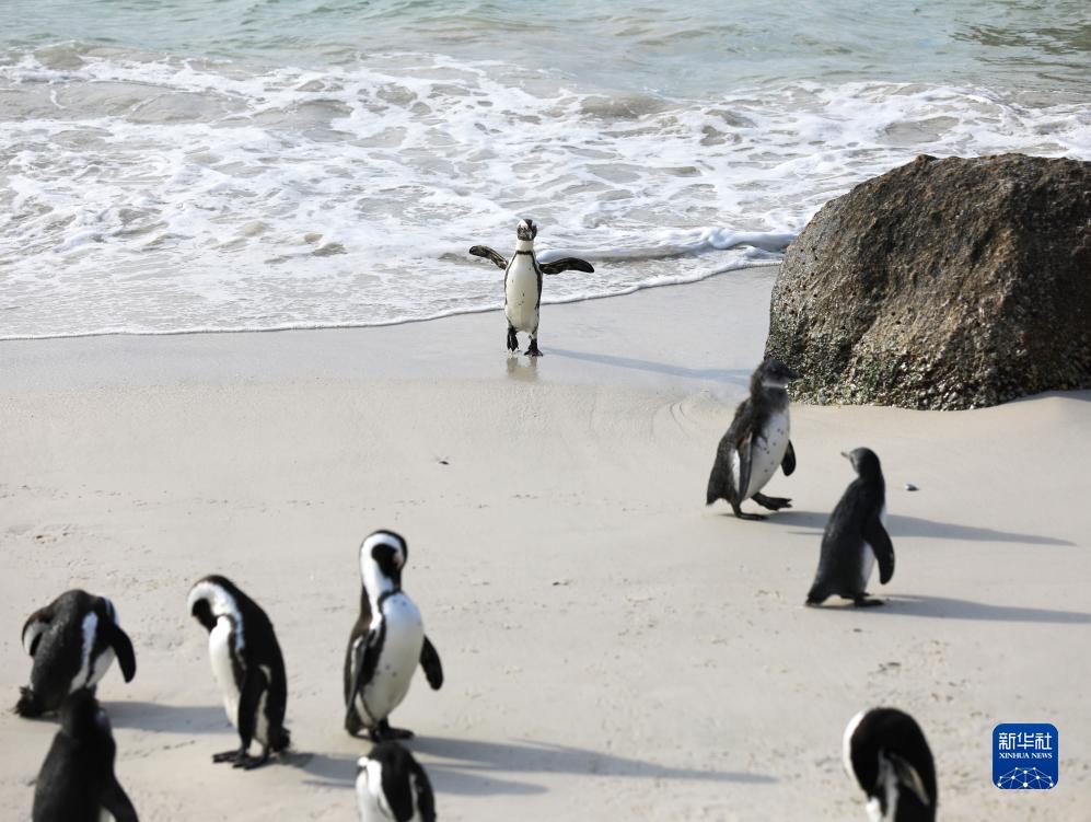 這是8月12日在南非西蒙鎮的博爾德斯海灘上拍攝的非洲企鵝。