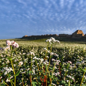近日,寧夏吳忠市鹽池縣境內的蕎麥花競相綻放,與長(cháng)城相映成趣。鹽池縣長(cháng)城遺址豐富,境內隋長(cháng)城和明長(cháng)城遺跡總長(cháng)259公里。鹽池縣也是蕎麥、糜子、谷子、綠豆等小雜糧生產(chǎn)基地,今年全縣播種蕎麥66.1萬(wàn)畝。