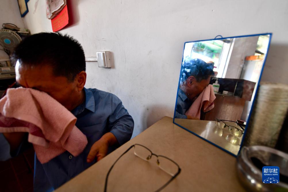 8月15日,出診歸來(lái)的肖九林用毛巾擦拭汗水。