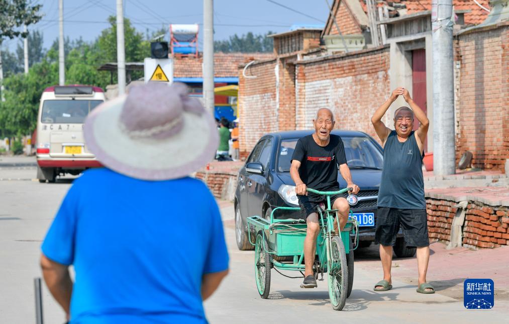 8月17日,在天津市武清區黃花店鎮邵七堤村,返村村民相互問(wèn)候打招呼。