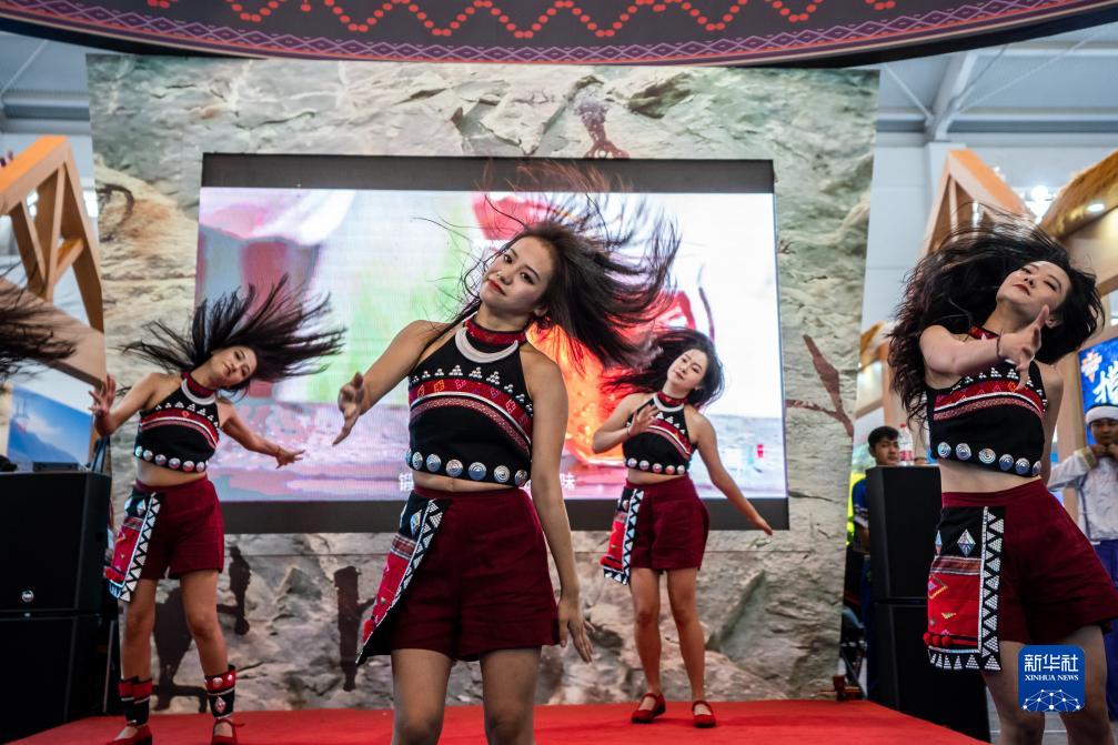 8月18日,第七屆中國—南亞博覽會(huì )臨滄展區的演員表演佤族甩發(fā)舞。