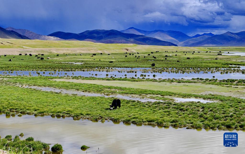 措勤縣的濕地牧場(chǎng)(8月18日攝)。