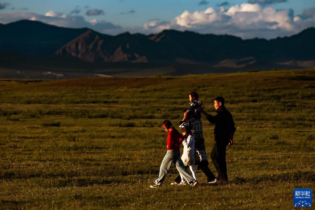 這是8月18日在蒙古國泰吉山谷拍攝的回家的人們。