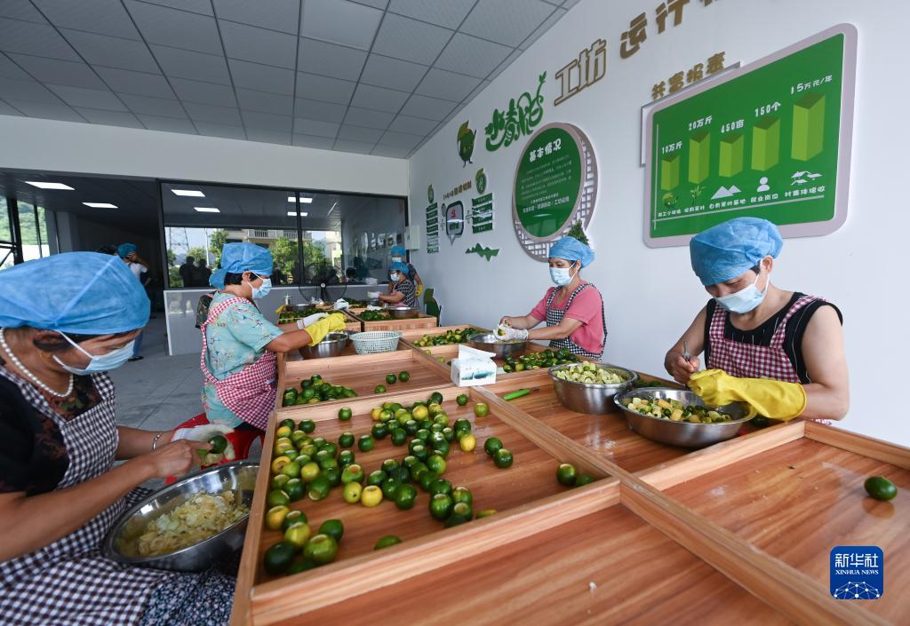 8月20日,在浙江省建德市三都鎮松口村的小青柑共富工坊,工人忙著(zhù)開(kāi)果、挖果。