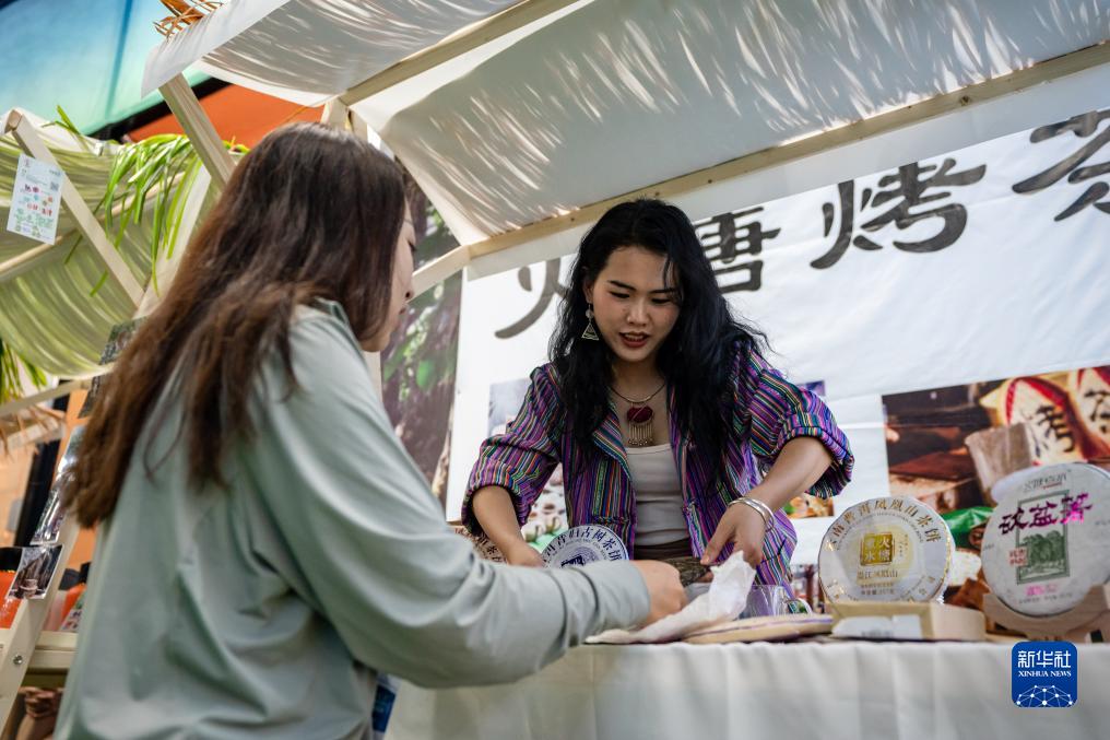 8月17日,展商(右)在第七屆中國—南亞博覽會(huì )南亞茶葉節上推介茶葉。