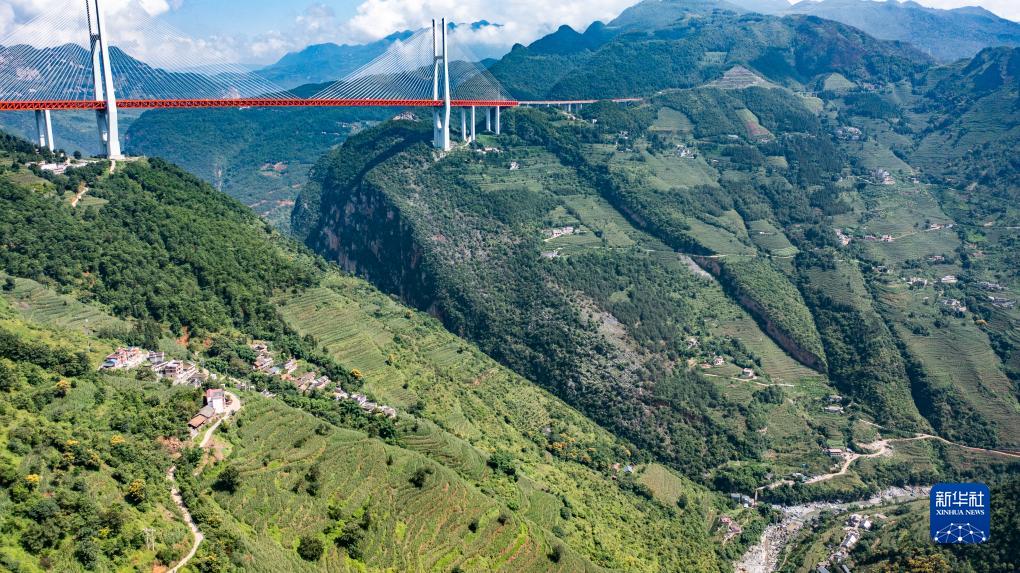 貴州、云南交界處的杭瑞高速北盤(pán)江大橋(8月15日攝,無(wú)人機照片)。
