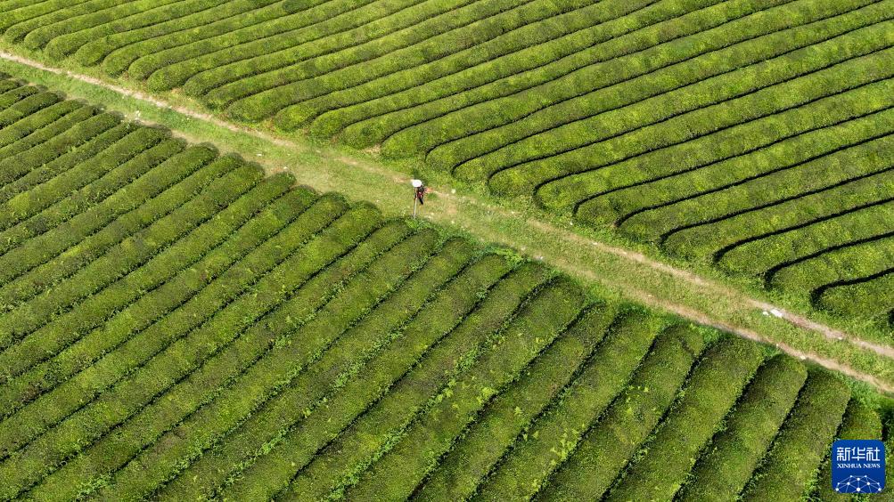8月20日,茶農在貴州省遵義市湄潭縣永興鎮萬(wàn)畝茶海管護茶園(無(wú)人機照片)。