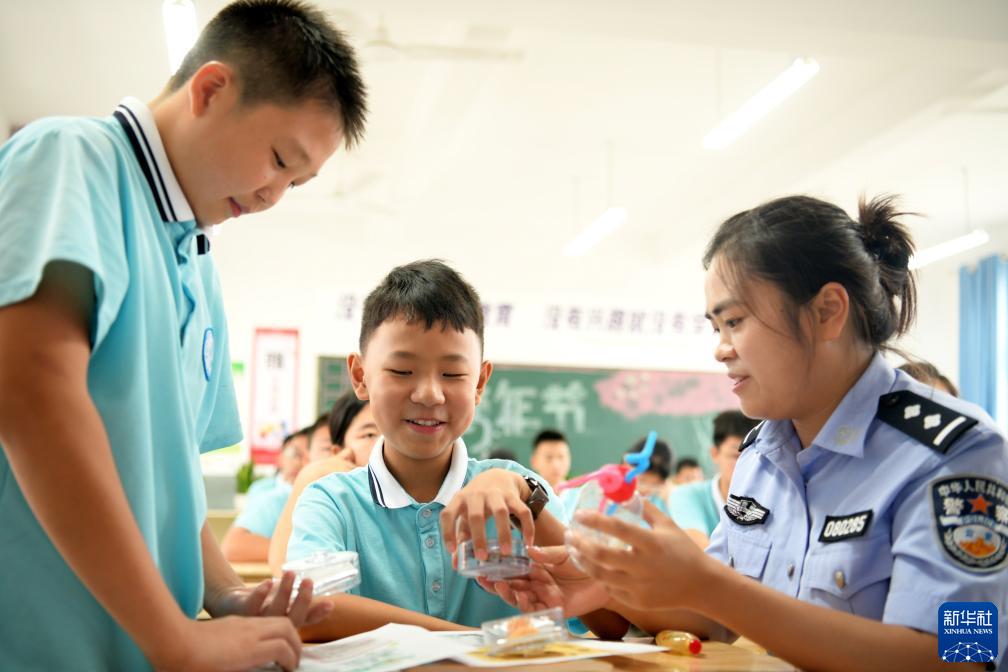 8月21日,貴州省遵義市新蒲新區禁毒辦的民警在北京師范大學(xué)遵義附屬學(xué)?!伴_(kāi)學(xué)第一課”上為學(xué)生講解禁毒知識。