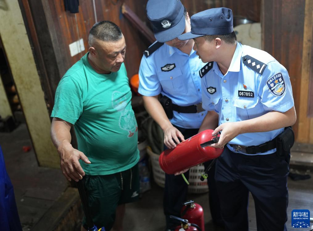 8月16日,舟山市公安局普陀區分局民警對泊岸漁船進(jìn)行常態(tài)化安全隱患排查。新華社記者 翁忻旸 攝