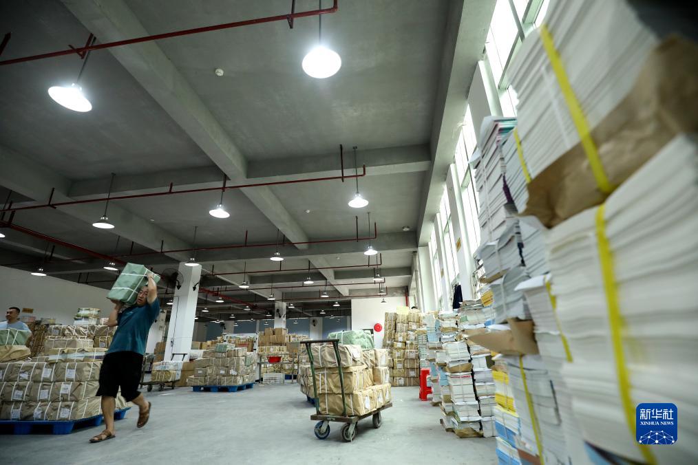 8月21日,在湖南省資興市新華書(shū)店教材倉庫內,工作人員在搬運教材。