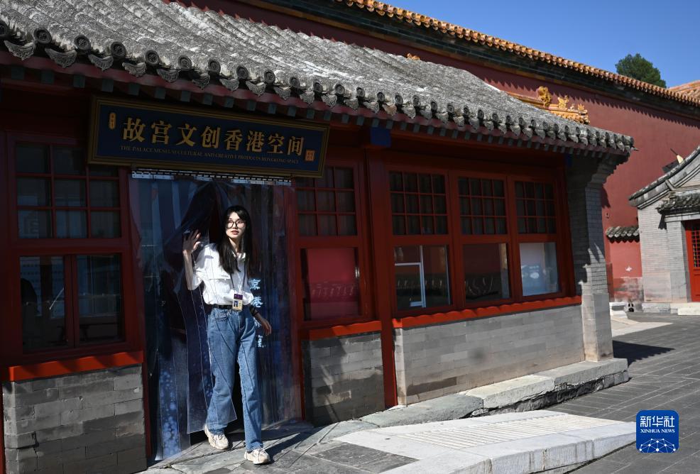 8月21日,澳門(mén)青年學(xué)生劉玳菱從故宮文創(chuàng )香港空間內走出。