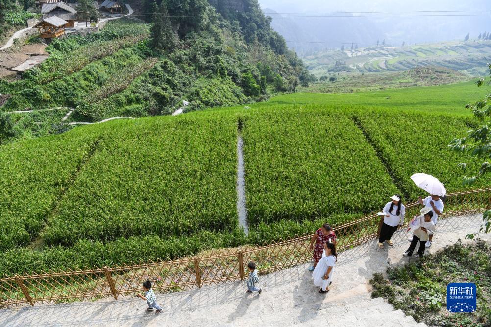 8月20日,游客在酉陽(yáng)縣丁市鎮中壩村游覽。
