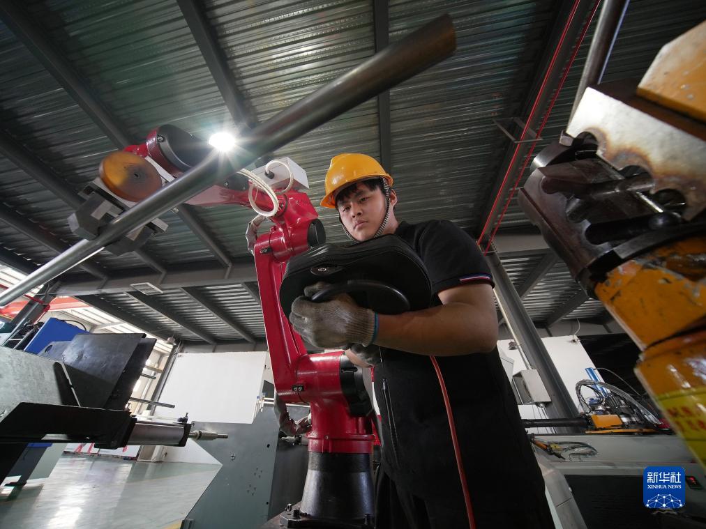 8月22日,工人在河北省滄州市孟村回族自治縣河北龍錦管道裝備有限公司生產(chǎn)車(chē)間進(jìn)行預制產(chǎn)品調試。