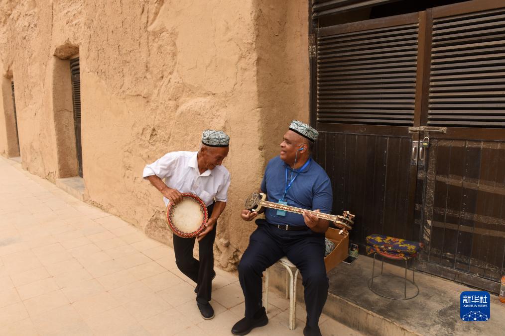 在柏孜克里克千佛洞,參訪(fǎng)團成員與當地居民共奏一曲(8月15日攝)。