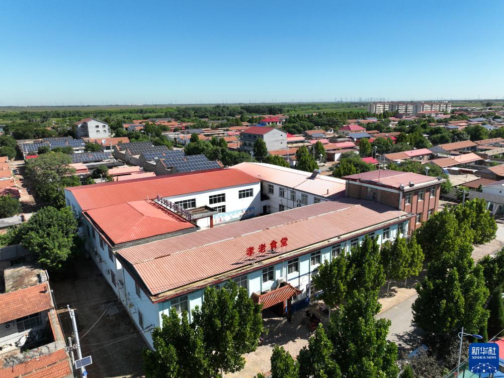 這是8月22日拍攝的青縣金牛鎮大鵓鴿留村孝老食堂(無(wú)人機照片)。