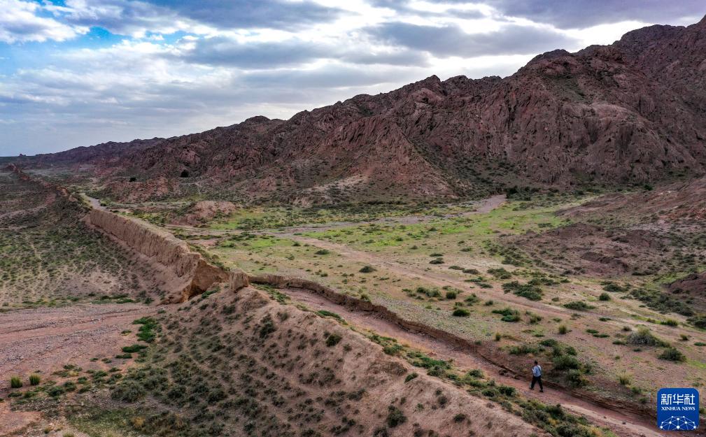 8月20日,董海寧徒步巡查賀蘭山沿線(xiàn)的明長(cháng)城永寧段(無(wú)人機照片)。