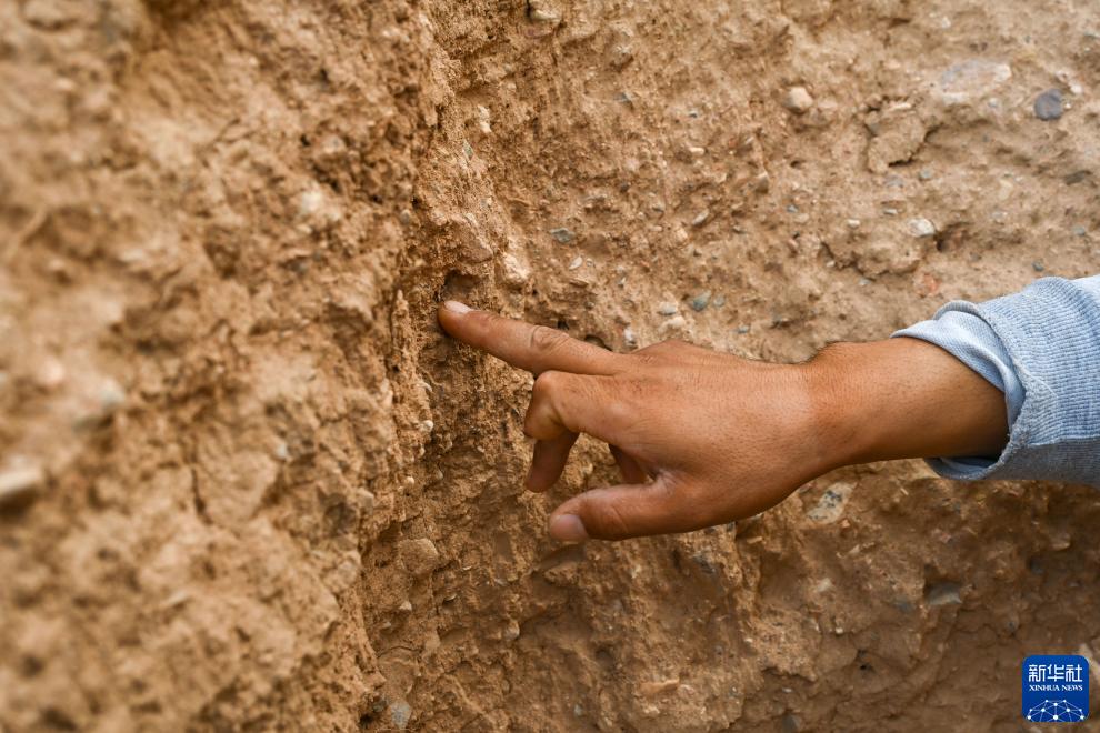 8月20日,董海寧介紹長(cháng)城墻體修建時(shí)用到的芨芨草。